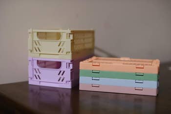 Promising review: "These are so cute and very easy to set up. I have my hairclips and scrunchies in them. I love that they are stackable, so they don't take up too much space. They're about the same size as my hand, so they're relatively small. They're good for storing little things like mini hand lotions and hand sanitizer. If you're thinking about getting them, I highly recommend them!" —Dog_Mom