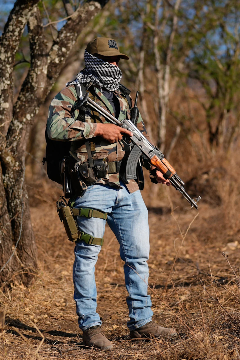 GUAJES DE AYALA, Mexico (AP) — Jesús Domínguez pushes through thick brush lining a rugged mountainside with an AK-47 slung over his shoulder and a grenade fastened to his leather belt. He marches alongside a pack of camouflage-clad men patrolling the rural stretches of Mexico against one of the country's most powerful drug cartels. Armed with military-grade weapons smuggled from the U.S., the 50-man force is one of dozens of “autodefensa,” or “self-defense,” groups that have emerged over the past decade in Mexico to fight increasingly sophisticated cartels in areas far out of the reach of security forces. “The government doesn’t care about us, and it’s impossible for our arms to compete with (the cartel’s),” said Domínguez, 34, from a watch post overlooking the mountains of Guerrero state. “They come at you with a ton of force, so you need to respond with force…If you don’t, they’ll overwhelm you.” The vigilantes in Guajes de Ayala join a volatile landscape of warring armed groups – from cartels with tentacles across Latin America to local mafias – in regions like Guerrero ravaged by splintering cartels for decades. It’s a tangle Mexican President Claudia Sheinbaum will have to unravel under pressure from the Trump administration and fears of more violence following the killing of Mexico's most powerful drug lord. The vigilante group was formed in 2020 when the cartel La Nueva Familia Michoacana tried to take control of seven communities buried deep in the mountains along a strategic throughway connecting cartels to the port city of Acapulco, where drugs and other illegal goods flow. Residents said the cartel, designated a foreign terrorist organization last year by the Trump administration, started illegally logging in their lands and tried to force residents to join fights against rival gangs. In the absence of Mexican military and police forces, locals armed themselves. Sporadic fire fights stretched on for nearly a year. Residents fled on foot, walking hours through far-off mountains with little more than the clothes on their backs. Communities of 1,600 people dwindled to just 400. After a pause in the conflict, the vigilantes rearmed in October when the Nueva Familia Michoacana began to again push into their territory, setting up fentanyl labs and monitoring them with drones, said the group’s leader, Javier Hernández. Now, the men guard their towns from mountain watch posts and surveil 100 cartel gunmen camped out a few miles (kilometers) away using their own drones. “We don’t want to be part of their ranks and we don’t want to leave our lands,” Hernández said. “We don’t want to be slaves to any cartel.” Conflict is more entrenched in Guerrero than in most Mexican states, with a history of militancy dating back to guerrilla movements in the 1960s. The landscape has grown increasingly complex as cartels have fractured into rival factions creating a much different situation than in the past when one cartel held monolithic control over a region. According to a 2025 DEA report, five cartels operate here. So do various local gangs and vigilante groups, many of which are allied with the larger cartels. “You have a kaleidoscope of armed groups,” said Mónica Serrano, a professor at the Colegio de Mexico studying violence in Guerrero. “It's one of the most vexing challenges facing the country and is at the root of the violence.” Self-defense forces took off in Michoacan and Guerrero around 2013. Like the group in Guajes de Ayala, they were formed as a desperate attempt to avoid being caught in the crossfire of warring cartels. But in places where criminal groups are more present than law enforcement, nearly every vigilante movement that has emerged in recent history has either been coopted by rival cartels or massacred. Mexico's government has been split about whether it should talk to vigilantes or treat them as criminals. In some cases, groups became cartel paramilitary forces themselves, flush with money and terrorizing the communities they claimed to protect. In others, cartels armed local citizens to help fight off rival gangs. “They corner you and you can't do anything,” Domínguez said. “That’s how what’s been created – which began as autonomy – is corrupted. People end up joining criminal groups just to survive.” The Guajes de Ayala community said it remains independent, but forces wield equipment far beyond the means of local farmers, including drone detection systems and tapped radio frequencies, and DJI drones worth thousands of dollars to spy on cartel gunmen. They carry AK-47s and AR-15s stamped with “MADE IN USA” and names of gun makers in Florida, South Carolina and even Poland. Because Mexico has strict gun control laws, the vast majority of arms in Mexico are smuggled from the U.S. by cartels. One gunman confirmed the vigilantes purchase guns from cartels, but would not say from which group. Another said he was once part of the Jalisco New Generation Cartel, or CJNG, and was paid to join the vigilantes. Another wore a hat reading “El Señor de los Gallos,” a nickname for Nemesio Oseguera Cervantes, the powerful CJNG leader slain by Mexico’s military in February. Two local criminal gangs fighting with the Nueva Familia Michoacana allow Guajes de Ayala residents to transit their territories to not be closed in on all sides like in the past. At the same time, Hernández said he feeds intelligence of the rival cartel to law enforcement, and that his group turned down alliance offers from other vigilante groups known for preying on civilians. The proliferation of armed groups across Mexico is a test for Sheinbaum as she seeks to offset Trump administration threats of U.S. military intervention. Under Sheinbaum, security forces have come down on criminal groups with a heavier hand than her predecessors. Homicides sharply dipped since she took office to the lowest levels in a decade, governm