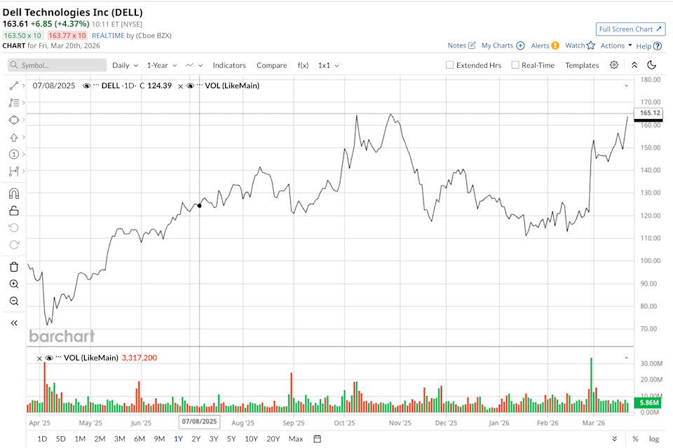 Super Micro Computer’s (SMCI) stock is collapsing, with shares plunging 27% in Thursday morning trading after federal prosecutors charged co-founder Yih-Shyan “Wally” Liaw, Ruei-Tsang “Steven” Chang, and Ting-Wei “Willy” Sun with operating a $2.5 billion smuggling scheme involving banned AI GPUs and servers to China. The U.S. indictment alleges the group violated export controls by routing high-performance hardware (believed to be Nvidia (NVDA) GPUs) through Southeast Asian shell companies. This bombshell lands atop SMCI’s already checkered past, including a 2020 SEC settlement for widespread accounting violations involving premature revenue recognition and understated expenses. The Strait of Hormuz Is Just a Distraction. The Real Story Is Bonds. What the Yield Curve Is Saying. Tesla Faces the ‘Couch Problem’: Modern Physics Warns the Optimus Robot Will Fail and Send TSLA Stock Falling Exxon vs. Chevron: Which Energy Giant Will Pay You for Generations as Oil Prices Surge? Tired of missing midday reversals? The FREE Barchart Brief newsletter keeps you in the know. Sign up now! Rebuilding trust may prove nearly impossible. The big question, though, is whether this stunning implosion positions Dell Technologies (DELL) as the clearest winner in the exploding AI server market? Prosecutors say SMCI's scheme ran from 2024 into 2025. Liaw, then senior vice president of business development and still a board member, along with Chang (SMCI’s Taiwan general manager) and contractor Sun, allegedly instructed a Southeast Asian company to place massive orders for SMCI servers. Those units which contained restricted chips were repackaged, relabeled with dummy machines, and diverted to China. Tactics reportedly included hair dryers to erase serial numbers and staged inspections to fool authorities. At least $510 million worth of servers reached Chinese destinations, part of a broader $2.5 billion effort. SMCI itself is not charged, but it placed the individuals on leave and cut ties with the contractor. The scandal revives memories of SMCI’s prior accounting troubles, amplifying doubts about governance and long-term viability. While the smuggling allegations grab the headlines, the subtext points to billions in potential business shifting toward Dell. Once a niche player overshadowed by SMCI’s hypergrowth, Dell has rapidly become one of the AI server market’s biggest competitors. Leveraging its global supply chain, enterprise relationships, and diversified portfolio, Dell has captured share from hyperscalers, sovereign AI projects, and neoclouds such as CoreWeave (CRWV), Tesla (TSLA), and xAI. In its third fiscal quarter of 2026, Dell shipped $5.6 billion in AI-optimized servers and built an $18.4 billion backlog. Management now targets roughly $25 billion in AI server shipments for full-year fiscal 2026 translating into triple-digit growth, as well as guiding for $50 billion in fiscal 2027. This momentum reflects Dell’s ability to scale production while maintaining stronger margins than pure-play rivals. SMCI’s own results tell a story of explosive but fragile growth. For the second fiscal quarter of 2026, revenue hit $12.7 billion, up 123% year-over-year (YOY) with pre-scandal guidance for at least $40 billion for the full year with AI platforms driving the surge. Yet customers may now hesitate to associate with a company facing export-control charges and a history of accounting scrutiny. Reputation risk is real; enterprises and cloud providers avoid even the appearance of ties to sanctioned shipments. Many may very well pivot to Dell as the next major player. Its AI business has been compounding rapidly, with thousands of customers and a broad ecosystem that reduces single-point vulnerabilities. Prior to the implosion, analysts consistently rated Dell a "Moderate Buy," citing AI server momentum, a $13 billion-plus Q1 shipment runway, and overall revenue diversification beyond servers. Consensus mean price target hovers at $168.62, with optimism around sustainable growth and share gains. Early market reaction post-news shows Dell shares rising 5% while SMCI craters, suggesting investors view the scandal as a competitive tailwind. Fresh commentary is still emerging, but the pattern aligns with prior observations that Dell and peers stand to benefit from any SMCI disruption. It is deeply unfortunate for SMCI investors who have watched billions in market value evaporate through no fault of their own. At the same time, the scandal carves out a rare opening for Dell to accelerate market share gains, scale its AI infrastructure leadership, and solidify its position as the go-to provider in this high-growth sector. On the date of publication, Rich Duprey did not have (either directly or indirectly) positions in any of the securities mentioned in this article. All information and data in this article is solely for informational purposes. This article was originally published on Barchart.com