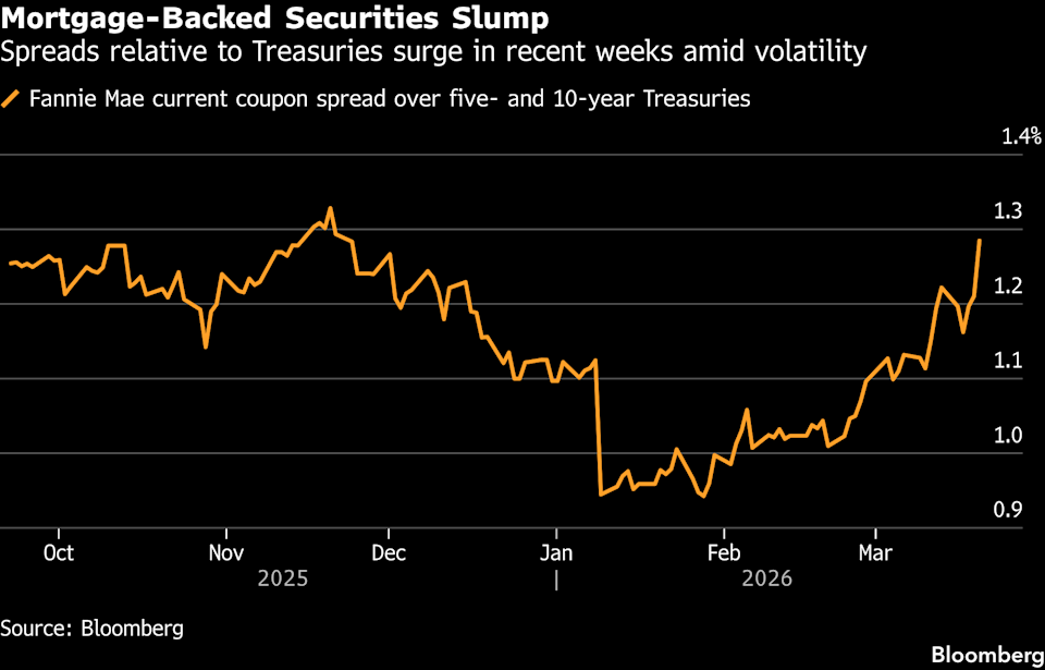 (Bloomberg) -- Fannie Mae and Freddie Mac have begun placing sizable orders to purchase mortgage-backed securities, stepping into a market roiled by widening bond spreads and a surge in volatility, according to a person with direct knowledge of the matter. The government-controlled entities are moving to capitalize on a sharp selloff while expanding their already significant portfolios of bonds and loans, said the person, who asked not to be identified discussing confidential information. Their efforts follow a directive two months ago from President Donald Trump instructing the companies to acquire $200 billion of MBS as part of a push to drive down mortgage rates and bolster housing affordability. Most Read from Bloomberg Iranian Navy Guided Indian Tanker Through Hormuz, Crew Member Says Trump Gives Iran 48 Hours on Hormuz, Threatens Power Plants Super Micro Co-Founder Charged With Smuggling, Departs Board Iran Says Ready to Let Japan Vessels Use Hormuz, Kyodo Reports Target Plans to Tighten Dress Code Rules for Store Employees The increased buying could help cushion a spike triggered by the Iran war that’s sent those rates to a three-month high. Still, it may only partially offset the broader market pressures stemming from the conflict, punctuated by a marked jump in Treasury yields on Friday. Representatives for Fannie, Freddie and the Federal Housing Finance Agency, which oversees both companies, didn’t respond to multiple requests for comment. Fannie and Freddie, which purchase and package home loans into securities and financially guarantee them to buyers, rank among the largest holders of US mortgage debt via their so-called retained portfolios — the bonds and loans they hold onto rather than sell to investors. The pair, under federal conservatorship since 2008, once held a combined $1.5 trillion worth, but by late 2022 that figure had dropped to just $158 billion. Since the middle of last year the portfolios have been on the rise again, climbing to $278 billion as of January, according to the most recent data available. Trump’s directive for Fannie and Freddie to ramp up bond and loan purchases sparked an almost immediate move in the roughly $9 trillion MBS market, with relative yields to Treasuries on recently issued securities narrowing about 0.2 percentage point. In the weeks that followed, however, the pair bought at only a modest pace. That likely reflected already compressed risk premiums on many mortgage bonds, which left limited profit potential and reduced scope to meaningfully influence mortgage rates. Mortgage-bond spreads have widened sharply since then, as a pickup in interest-rate volatility, driven in part by swings in oil prices amid the escalating conflict in the Middle East, ripples through fixed-income markets. Most Read from Bloomberg Businessweek American Retirees Want to Leave the Country. Italy and Costa Rica Are Happy to Have Them Architect Bjarke Ingels Says Modern Buildings Are So Boring Beware the Retirement Red Zone That Can Derail Your Savings Plan Peter Attia’s Longevity Empire Rocked by Epstein Files Why Diesel Prices Are the Real Concern for the Economy ©2026 Bloomberg L.P.