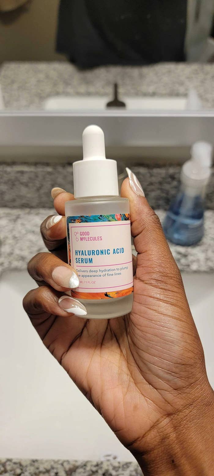We hope you love our recommendations! While every product is independently chosen by our editors, BuzzFeed and our publishing partners may collect a share of sales or other compensation from the links on this page. You can read more about how our affiliate partnerships work in our Editorial Standards & Ethics Guide. The hyaluronic acid-based serum is as potent as it is affordable. This serum has a 4.7 out of 5-star rating at Amazon and over 7,300 5-star reviews. HuffPost Shopping editor Marquaysa Battle speaks very highly of this nourishing serum. “An aesthetician deemed my skin severely dehydrated a month ago and recommended I add hyaluronic acid serum to my skin care routine immediately,” she said. “I’d already been trying the one by CeraVe but it obviously wasn’t working. So, a friend recommended I switch to Good Molecule’s hyaluronic acid serum instead and it literally changed my skin on the very first use. It has more slip than the one from CeraVe, doesn’t irritate my skin, a little goes a long way and it’s literally the singular secret weapon that stopped the rest of my skincare routine from becoming wholly obsolete this winter. My once parched, tight face now has its bounce and glow back. I’m buying this on repeat!” “Amazing product with great results. I was really skeptical for the price, but I have an amazing esthetician who, because of her own health issues, has to look for clean products with particular standards. After my hydrodermabrasion, I asked for some face product suggestions for maintenance and makeup. This was one of them— I couldn’t believe the quality for the price. Within two days, I started seeing results— so much so I’ve gone without makeup which isn’t usual for me. My skin looks brighter, hydrated, and healthier. I will definitely keep using.” —Whitney Duvall “The Good Molecules Hyaluronic Acid Serum is a great product for those who are in need of a hyaluronic acid serum in a budget! I have really oily skin and my face doesn’t feel stripped when I add this alongside my creamy toner. Overall, it doesn’t hurt to try this product as it is in the budget side as well as clean ingredients with full transparency! (P.S. I’ve bought more than 3 bottles ever since!)” —Czar Ryan Palomar “Wow, impressed. Haven’t had great luck in skincare products lately. Until I found this stuff! Been using before my retinol at night and this is plumping and hydrating and no reactions! I’ve gotten compliments on my skin last few days. I’m very excited about this serum, even works on my lips :)”—AP “Affordable and effective. This serum is super hydrating and I love it. It is lightweight so your pores won’t be clogged. I keep repurchasing!” —Breonna Reviews for this post have been edited for length and/or clarity.
