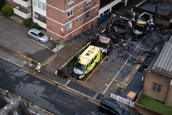 Four ambulances belonging to Hatzola Northwest, a volunteer organization that provides emergency medical response, were damaged, according to the London Fire Brigade.