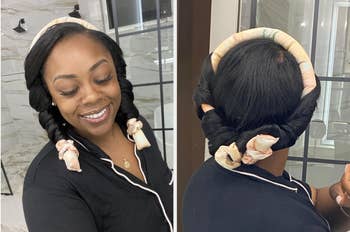 Promising review: "I had low expectations for this product to work because curls from a curling iron fall out of my hair pretty immediately. I was blown away by how well these heatless curls turned out, though! It’s easy enough to do, but there’s a bit of a learning curve to getting the curls tightly wrapped. It takes less than 10 minutes, and my hair is ready to go when I wake up. I’m a side sleeper and find it a tad uncomfortable to sleep on, but it’s a small price to pay for curls that last all day, in my opinion. I’d give this 10 stars if I could — truly a game changer that’s made my mornings so much easier." —Stephanie
