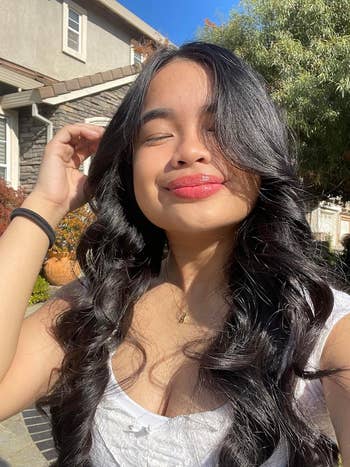 Promising review: "I've always struggled with frizzy or dry hair. I've spent hundreds of dollars on oils and conditioners and nothing helped much... but THIS?! this. Life changing. I feel like my hair is so much smoother and silkier. It definitely looks that way too. Idk what is in this, chemical wise, but frankly idc anymore. Just buy it." —Laura S.