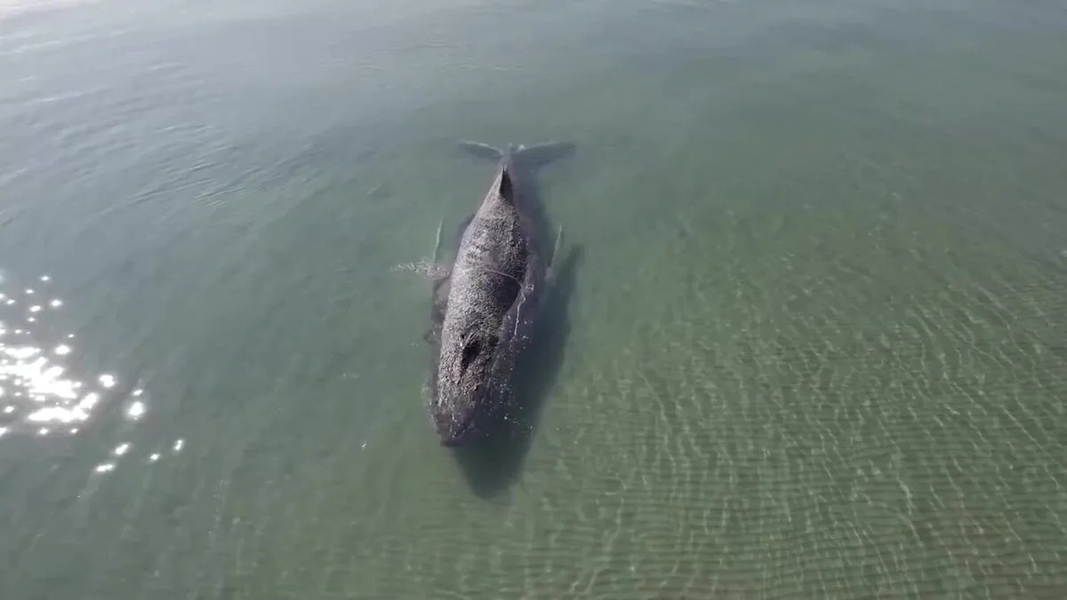 Humpback whale stranded in shallow waters in northern Germany