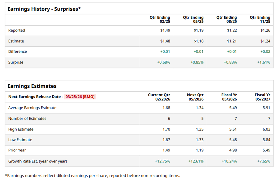 On Dec. 19, 2025, PAYX shares closed down by 1.7% after reporting its Q2 results. Its adjusted EPS of $1.26 beat Wall Street expectations of $1.24. The company’s revenue was $1.56 billion, topping Wall Street forecasts of $1.55 billion.