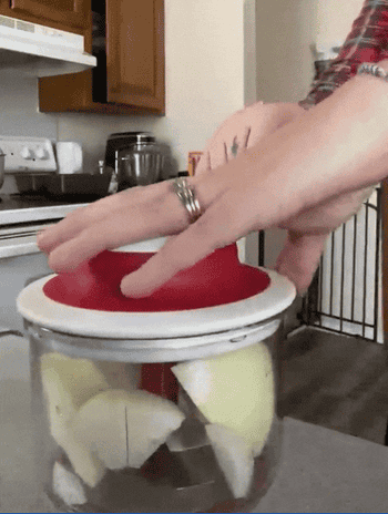 Promising review: "This chopper is amazing!! I love cooking, but used to absolutely HATE chopping onions... until someone gave me this chopper! Now I simply have to quarter the onion, throw it in the chopper, pull the handle about 10–15 times, and they're ready to be used! No more teary eyes or spending a long time chopping onions. The cup is big enough to fit a whole onion... I think the capacity is three cups. There's tons of other uses to this as well... you can chop pretty much anything from herbs, veggies and fruits, to making salsa and guacamole." —Valjulia