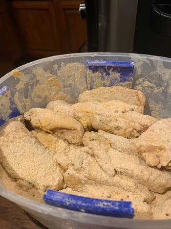 "This thing is awesome! Breading anything makes such a mess in my kitchen, but I absolutely loved being able to do everything in one container. I only tried a dry rub, but I was so impressed with how evenly it coated. Plus, being dishwasher-safe was a major bonus. Seriously considering getting some for gifts." —Susanne C.