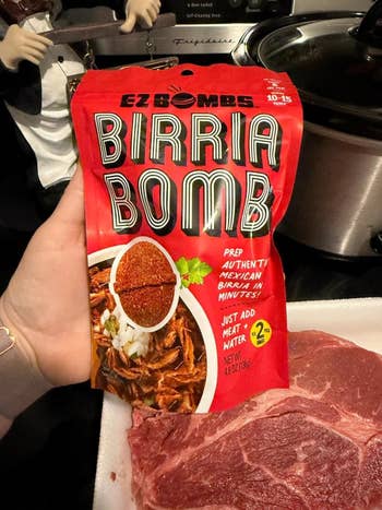 Promising reviews: "If you like birria tacos — get this! It makes it so easy to make authentic birria at home. Just to throw your roast in your crockpot, add beef broth or water and one bomb. Cook on low for six hours and you have delicious birria ready for you to put into your favorite tortillas." —T. Anderson