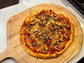 Promising review: "I ordered this and we have made homemade pizza every week. It is the perfect size for the 2 of us and it makes really good pizza. I buy the pizza dough ball at Publix and I freeze half of it for the next time. Add your toppings and put in the oven - in 3 minutes you have a delicious meal!!" —Christie Widener