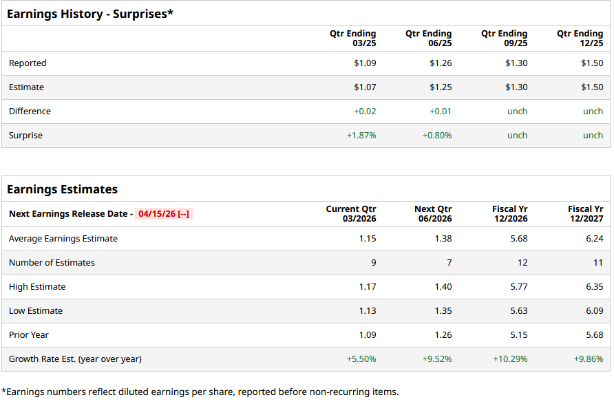 Lake County, Illinois-based Abbott Laboratories (ABT) discovers, develops, manufactures, and sells health care products worldwide. The company has a market cap of $181.2 billion and operates through Established Pharmaceutical Products, Diagnostic Products, Nutritional Products, and Medical Devices segments. Abbott is expected to release its Q1 2026 earnings soon. Ahead of the event, analysts expect the company’s EPS to be $1.15 on a diluted basis, up 5.5% from $1.09 in the year-ago quarter. The company has surpassed or met Wall Street’s EPS estimates in each of its last four quarters. Investors are Piling into Microsoft Call Options - Unusual MSFT Options Activity Today Stocks Settle Lower as Iran War Boosts Crude Oil and Bond Yields Stocks Fall as Iran War Drags On Tired of missing midday reversals? The FREE Barchart Brief newsletter keeps you in the know. Sign up now! For fiscal 2026, analysts project the company’s EPS to be $5.68, up 10.3% from $5.15 in fiscal 2025. Moreover, its EPS is expected to rise by roughly 9.9% year over year (YoY) to $6.24 in fiscal 2027. ABT stock has declined 16.9% over the past 52 weeks, underperforming the S&P 500 Index’s ($SPX) 13.7% rise and the State Street Healthcare Select Sector SPDR ETF’s (XLV) marginal decline during the same time frame. On Jan. 22, ABT stock fell nearly 10% following the release of its mixed Q4 2025 earnings. The infant formula, medical devices, and drugs maker’s revenue for the quarter came in at $11.5 billion, falling short of Wall Street estimates. However, its adjusted EPS amounted to $1.50, which surpassed the Street’s estimates. Analysts are highly bullish on ABT, with the stock having a “Strong Buy” rating overall. Among the 28 analysts covering the stock, 20 are recommending a “Strong Buy,” two suggest a “Moderate Buy,” and the remaining six analysts advise a “Hold” for the stock. ABT’s average analyst price target is $134.21, indicating an upside of 29% from the current levels. On the date of publication, Aritra Gangopadhyay did not have (either directly or indirectly) positions in any of the securities mentioned in this article. All information and data in this article is solely for informational purposes. This article was originally published on Barchart.com