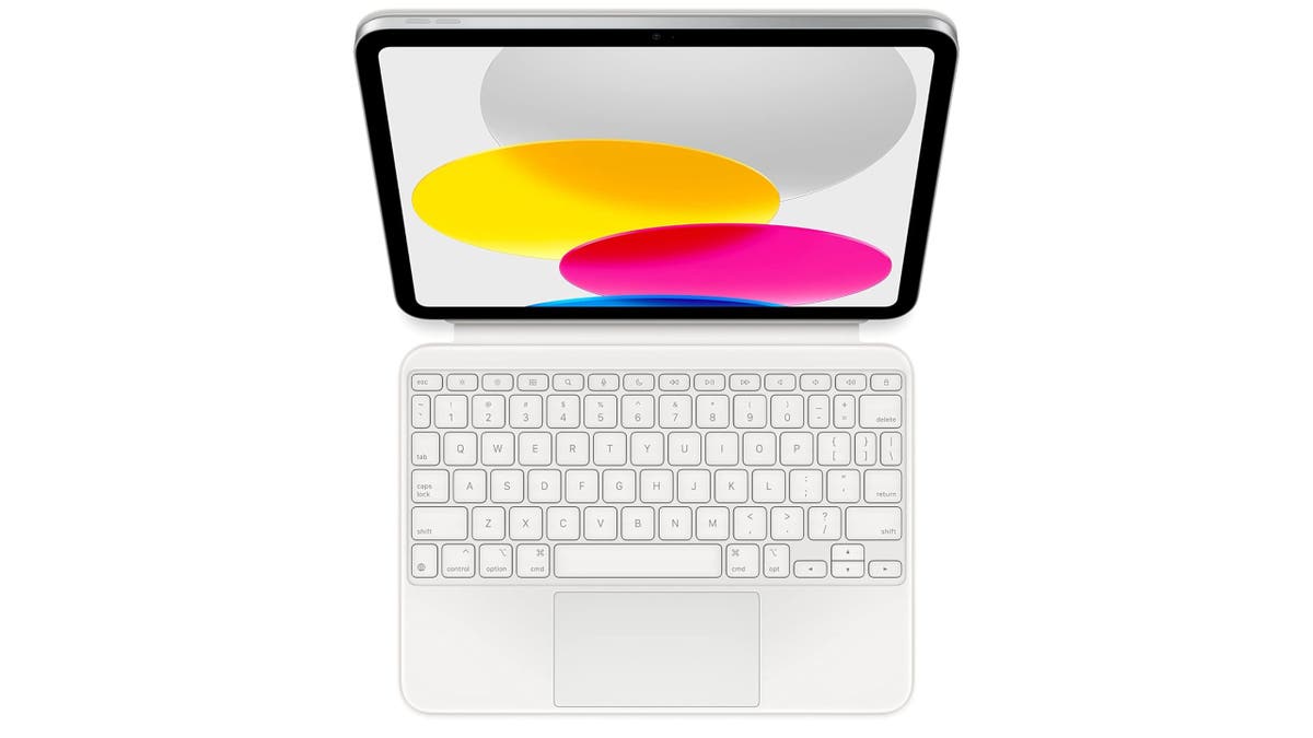 Transform your iPad into a laptop experience with this magnetic Apple Magic Keyboard. The built-in trackpad simplifies scrolling, and the standard-size keyboard gives you plenty of room to work without increasing bulk. The two-piece design adds a protective backing to your iPad, helping prevent scratches and other damage.