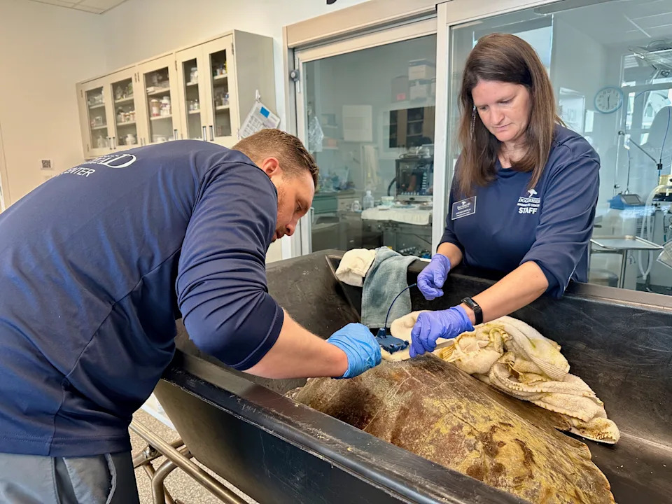 JUNO BEACH, Fla. (AP) — The veterinary staff at a Florida sea turtle hospital is getting help from space to monitor the animals they have rehabilitated. They're particularly interested in amputees.