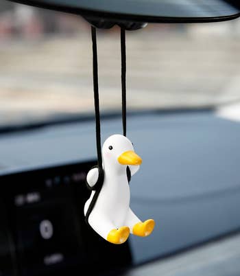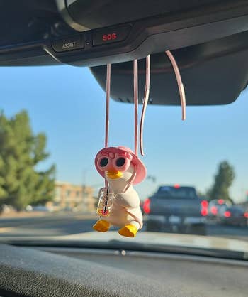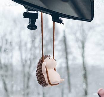 Promising review: "This is so cute. I'm so happy with this. I'm not sure how they managed to keep this from swinging all over the place like some things that you hang on your rearview mirror, but this doesn't do that. Maybe it's the two-string design. Whatever it is, I appreciate it. I forget it is there. It's big enough to see but not overbearing in size. It is really nice quality and a nice weight. I am pleased with my purchase." —Rebecca