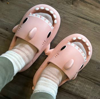 Promising review: "These slippers are fantastic! The shark-inspired design is refreshingly unique and adds a fun touch to my loungewear. Beyond their cool appearance, they are incredibly comfortable to wear. The plush padding feels like walking on clouds, and the fit is just right. I appreciate how easy they are to clean as well; a quick wipe or rinse and they look as good as new. These slippers have become my go-to footwear around the house, and I couldn't be happier with them!" —Y.H