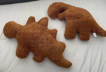 Promising review: "This dino chicken nugget pillow is a real Jurassic dream come true! It's the perfect cuddle companion for all the paleontologists-in-training or anyone with an insatiable appetite for comfort. Just be careful not to accidentally take a bite while you're napping, because it looks deliciously deceiving!" —LadyTee