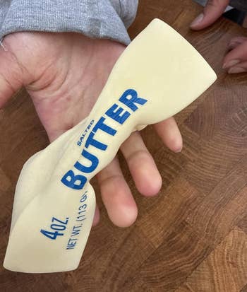 Promising review: "This slow-rising butter squishy is really lovely. The texture is very soft and realistic, and it feels satisfying to squeeze. Overall, it’s a fun, stress-relieving little squishy that I would recommend to anyone looking for something soft, durable, and enjoyable." —Sam