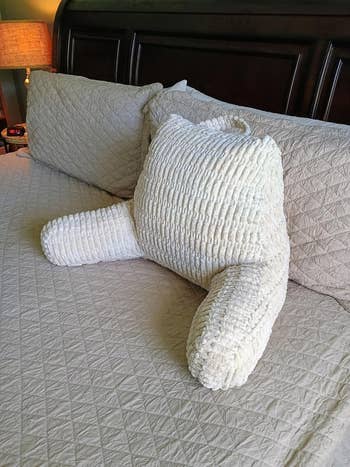 Promising review: "When I first saw this, I immediately thought it was completely ridiculous. But it kept popping up in my periphery, and one day, after seeing it on YouTube, I bought it on impulse, along with a page-turner. And so glad I did! It is so easy to clip in your Kindle and twist/extend it into the perfect angle, and the bowl is a great spot to stash my page-turner, earbuds, etc. Paired with the page turner, it's a total game changer, you can get cozy under blankets and not even have to move your hands, which is significantly more comfortable for bedtime reading (and safer — who else has dropped a Kindle on their face??). I am very nearsighted, and it's easy to tuck the pillow in and angle the Kindle close to my face. I also like using it just in my lap, where I can elevate the Kindle and avoid neck and wrist strain on those long reading sessions! I don't even feel embarrassed when my husband makes fun of it; it's that good :P If you love your Kindle, you will love this pillow!" —J. Thornberg