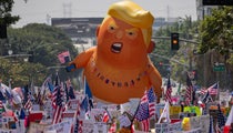 In Topeka, Kansas, a rally outside the Statehouse had people impersonating a frog king and Trump as a baby. Wendy Wyatt drove with “Cats Against Trump” sign from Lawrence, 20 miles (32 kilometers) to the east, and planned to drive back to her hometown for a later rally there.