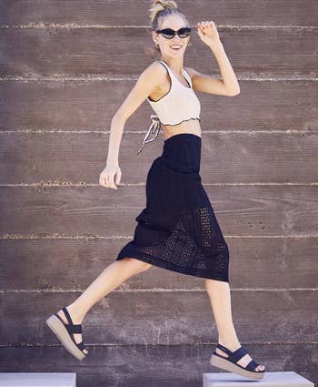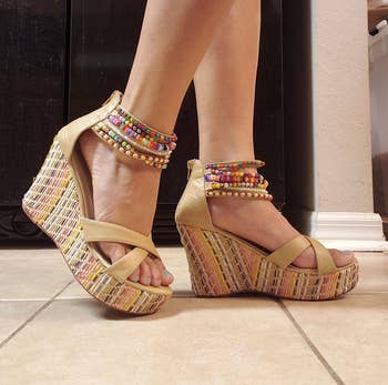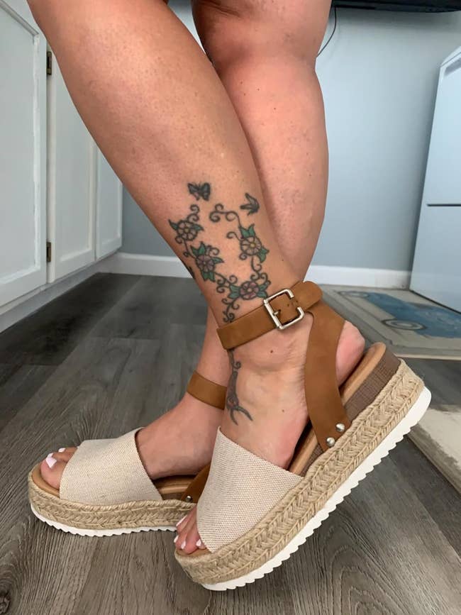 We hope you love our recommendations! While every product is independently chosen by our editors, BuzzFeed and our publishing partners may collect a share of sales or other compensation from the links on this page. You can read more about how our affiliate partnerships work in our Editorial Standards & Ethics Guide. No matter how big or small the boost, you can stand a bit taller without subjecting your feet to a world of pain. Unless otherwise specified, all sizes in this post are listed in women's. Promising review: "5 star rating for literally the best shoe ever. I wore these almost everyday this summer. They are so incredibly comfortable. Cushion and padding is wonderful makes walking and wearing them very easy. They are not to platform at all and they don't have a separate heel height from the rest of the shoe so you're on a even walking ground. Size is perfect I stayed true to size and ordered my original sizing in Ugg which is perfect. The style os so trendy and literally goes with everything. I highly suggest them. I have back problems/ back surgery and these made my life so much easier. Comfortable and great support." —Ashley Long Get them from Amazon for $69.97+ (available in sizes 5–12 and six colors — not all colors available in all sizes). Promising review: "These Soda Topic Open Toe Buckle Ankle Strap Espadrilles are incredibly comfortable. I wore them walking all around Vegas, and my feet never hurt—no blisters, no soreness. They’re lightweight, easy to walk in, and the ankle strap feels secure without rubbing. The espadrille style is cute and versatile, and they held up great for long days on my feet. Definitely a great find if you want comfort without sacrificing style." —Jamie Get them from Amazon for $19.99+ (available in sizes 5–12, including wide sizes, and in many colors). Promising review: "I have somewhat wide feet, and these shoes are perfect—not too wide or too narrow. The footbed has just the right comfort for wearing all day. The height is also just right—not too tall for shorts but tall enough for skirts and dresses. These are perfect go-to shoes for Spring and Summer when you can’t figure out what to wear with an outfit. These shoes go from the beach to casual dining easily!" —Ruth G Get them from Amazon for $39.98 (available in sizes 5–10 and eight colors). Promising review: "I love these sandals. They are extremely comfortable and very stylish. I can wear them for long periods of time and my feet don’t hurt. They are a little heavy, but once you start walking in them, you don’t even notice it. I get complimented every time I wear these sandals. Perfect summer shoe, and they’ll last for a lifetime. Highly recommend!" —Larriane T. Get them from Dr. Martens for $160 (available in sizes 5–11). BuzzFeed Shopping editor Chelsea Stuart says: "I have these and they are SO COMFORTABLE. Since I live in NYC, I always walk a fine line trying to find sandals that are both stylish and durable enough to walk mile after mile without ripping my skin off. I wore these on a recent IKEA trip (which — if you know me — is like a three-hour ordeal at minimum) and I couldn't have picked a better shoe. They're supportive but also have a tiny bit of bounce and I like how the straps are adjustable. I just bought a second color because I know I will be wearing them every single day." Promising review: "Fit as expected, gives a little height. Good for anyone who needs support on their feet. I changed into these shoes after wearing heels all day at a wedding I was in, perfect dancing shoes, and gave enough height so my bridesmaid dress did not drag on the floor! Perfect spring, summer, or fall shoes!" —James Get them from Amazon for $45.49+ (available in sizes 2–11 and in a variety of colors). Promising reviews: "I’ve recommended these to every single person I know. I bought them solely for a trip to Greece and they were the only shoes I wore. A 7-mile hike through a rocky, mountainous terrain, all over the slippery steps of a hidden seaside village, and through a walking tour of Athens and the Acropolis. Very comfortable and supportive." —Alexandra H. "Super cute Tevas. Will be great for the spring/summer season. I’m a beach gal so these are right up my alley. I usually wear a 6.5 and got the recommended 6. They fit perfect and give me a little height. Very comfortable for a platform style with lots of cushion. Love, love love!!" —brandibabe Get them from Free People for $80 (available in sizes 6–10 and seven colors — not all colors available in all sizes) or Amazon for $47.78+ (available in sizes 5–12 and a variety of colors — not all colors available in all sizes). Promising review: "These shoes are stunning. The color is exactly as pictured. They are beautifully built. So comfortable so far. Get them. You need them." —Rebecca M. Get them from Charlotte Stone for $248 (originally $258; available in sizes 5–13 and three styles — not all styles available in all sizes). Promising review: "I’ve worn these everywhere!! They are super comfy and lightweight, go with everything, and run true to size. I got them in white as well, and I’m obsessed. I’ve been to a concert in them, driven in them, and also, I went on vacation recently and walked all over the city, went out, and danced at bars. I’ve never had a pair of heels that are so comfy! Seriously so worth the money." —Courtney Wilson Get them from Amazon for $26.95+ (available in sizes 5–11 and in a variety of colors). Get them from Birkenstock for $124 (available in sizes 4–12.5 and in nine colors — not all colors available in all sizes). Promising review: "Holy cow! These Reef sandals are fab. I haven't been wowed like this for a long time, but these Reef shoes are a huge win. Comfortable straps, arch support, and a nice 1-inch-high platform, this shoe goes great with wide-legged pants, dresses, and for kicking about town." —cheer team captain Get them fro