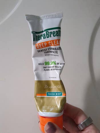 BuzzFeed Shopping writer (and apparently investigative journalist!) Karly Jacklin says, "I asked myself the question, 'What would happen if I just called Therabreath up?' And then I verified with a brand representative that this toothpaste's pH is 7.5–8, which is alkaline enough to effectively clean teeth without harming enamel. (Always be sure to check with your dentist to make sure you are using the right toothpaste for you, though.)
