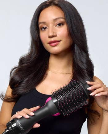 Promising review: "I LOVE this Revlon Volumizer Hairdryer / Hairbrush Styler. I will admit that when I first started using this hairdryer, I thought to myself, 'this is being returned to the store' because it felt awkward to hold. After a few minutes of using it, I began to get comfortable with the styler. I also noticed my hair became extremely smooth and shiny. I have naturally coarse, curly, frizzy, red hair. My hair never looks smooth and shiny. I was sold on this purchase after five minutes of using the styler. I received four compliments on my hair from total strangers on the first day that I styled my hair with this product. I would suggest using a heat-protectant styling product whenever you use a hot appliance on your hair. I would highly recommend this product to anyone looking for smooth, shiny hair." —ALASKA99