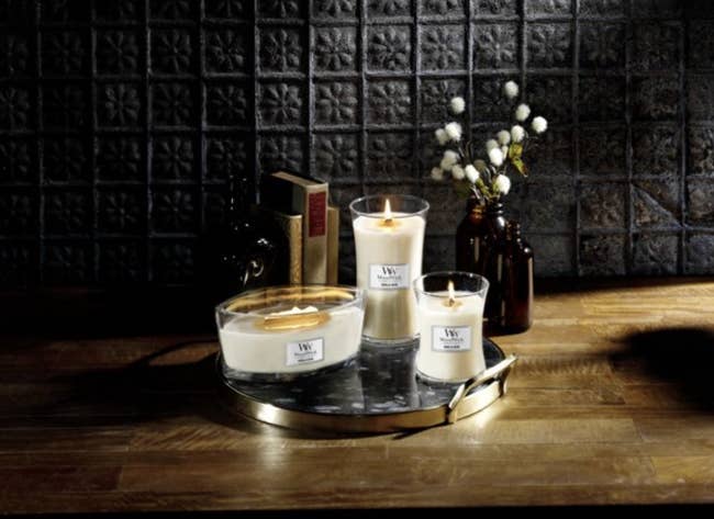Promising review: "The candle burns really evenly, and the wood wick creates a nice ambience. This candle fills large rooms easily, and the scent is great! It's a really warm vanilla, sweet but not overpowering." —Laytad