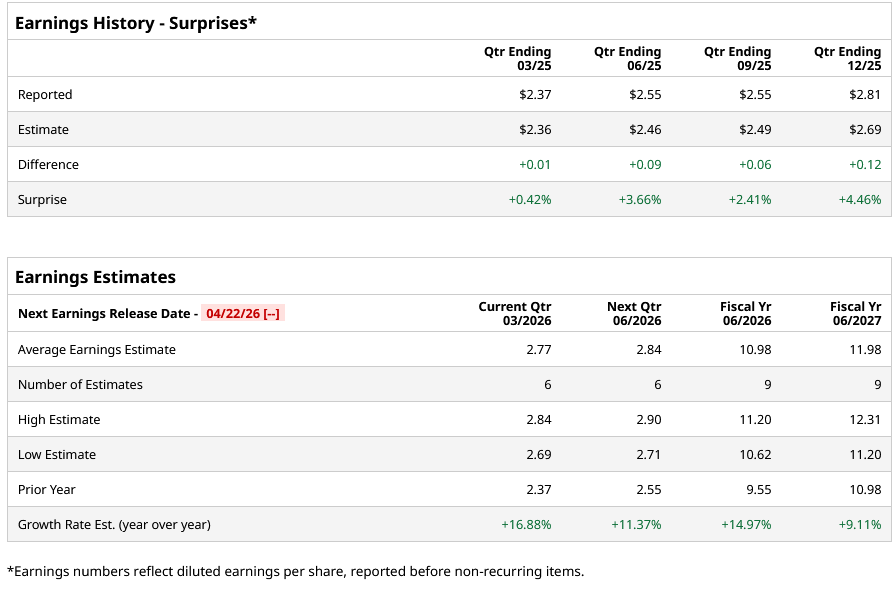 San Diego, California-based ResMed Inc. (RMD) develops, manufactures, distributes, and markets medical devices and cloud-based software applications to diagnose, treat, and manage respiratory disorders in the United States and internationally. Valued at $32.1 billion, the company is expected to release its Q3 2026 earnings soon. Ahead of the event, analysts expect the company’s EPS to be $2.77 on a diluted basis, up 16.9% from $2.37 in the year-ago quarter. The company has exceeded Wall Street’s EPS estimates in each of its last four quarters. Everyone Is Talking About Volatility. That’s Not The Story. Iran, Oil Prices and Other Key Things to Watch this Week Should You Buy the Dip in Western Digital Stock as Google Launches TurboQuant? Tired of missing midday reversals? The FREE Barchart Brief newsletter keeps you in the know. Sign up now! For fiscal 2026, analysts project the company’s EPS to be $10.98, up 15% from $9.55 in fiscal 2025. Moreover, its EPS is expected to rise by roughly 9.1% year over year (YoY) to $11.98 in fiscal 2027. RMD stock has declined marginally over the past 52 weeks, underperforming the S&P 500 Index’s ($SPX) 11.9% rise but slightly rallying the State Street Healthcare Select Sector SPDR ETF’s (XLV) 1.2% decline during the same time frame. On Jan. 29, RMD stock declined marginally following the release of its Q2 2026 earnings. The company’s revenue increased 11% from the prior year’s quarter to $1.4 billion and surpassed Wall Street estimates. Moreover, its adjusted EPS for the quarter amounted to $2.81, also topping the Street’s estimates. However, the stock has been exhibiting slower-than-average revenue growth compared to its competitors, leading to a loss of investor confidence. Analysts are moderately bullish on RMD, with the stock having a “Moderate Buy” rating overall. Among the 19 analysts covering the stock, eight are recommending a “Strong Buy,” two recommend a “Moderate Buy,” eight suggest a “Hold,” and one analyst advises “Strong Sell” for the stock. RMD’s average analyst price target is $295.23, indicating an upside of 33.9% from the current levels. On the date of publication, Aritra Gangopadhyay did not have (either directly or indirectly) positions in any of the securities mentioned in this article. All information and data in this article is solely for informational purposes. This article was originally published on Barchart.com
