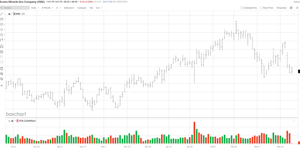 The bank predicted that SMG's raw-material costs would rise significantly during its current fiscal year due to the war, with the amount that it shells out for urea, diesel, and polyethylene all climbing meaningfully. As a result, JPMorgan cut its FY27 earnings per share estimate for the company to $4.35 from $4.65, and it reduced its price target on the name to $67 from $70.