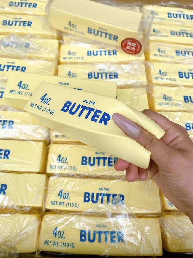Promising review: "This slow-rising "butter" squishy is really lovely. The texture is very soft and realistic, and it feels satisfying to squeeze. It rises slowly, a little slower than I expected, but that actually makes it more fun to play with... The squishy holds up well even after many squeezes, and I think the value for money is very good — I feel like I got a high-quality squishy at a reasonable price. Overall, it’s a fun, stress-relieving little squishy that I would recommend to anyone looking for something soft, durable, and enjoyable." —Sam