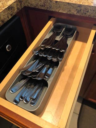 My colleague Mallory Mower has this and loves it: "I use this in my kitchen! I have to admit...it hasn't exaaactly helped with organization. What it *has* done is created a neat and orderly spot for my utensils...opening up a ton of extra drawer space for my unruly stash of pens, bouillon cubes, drink flavor packets, and the like. Long story short — I recommend this for tidy and messy folks alike!"