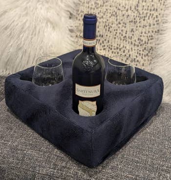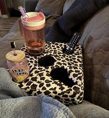 Promising review: "This thing is great! I’m home on maternity leave with my new baby and spend most of my time on the couch under a sleeping baby. This product makes it easy for me to keep my drinks, remote, etc close by even with dogs running around. It’s a little more expensive than I would have liked but it works and I love it so money well spent!" —Amber