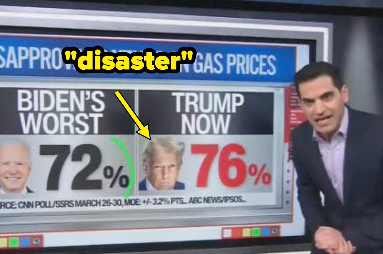 If he could read, he'd be so mad right now. As a Senior Lifestyle editor at BuzzFeed, I cover stories about health, home, politics, and relationships, with a special focus on work and money. The person who posted this pic captioned it, "The Trump effect." Reporter: Today, gas prices hit $4Trump: Yeah, it hit $4 and we’re not going to have a country throwing nuclear weapons at us.Reporter: Americans are feeling the effectsTrump: They’re also feeling a lot safer pic.twitter.com/qL9eNW6ZyS "These numbers are a disaster for President Trump ... the worst of all time at this point" -- Harry Enten ticks through Trump's absolutely dire polling on the economy pic.twitter.com/QbDIRFGY86