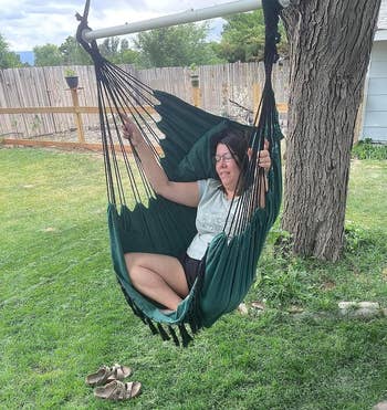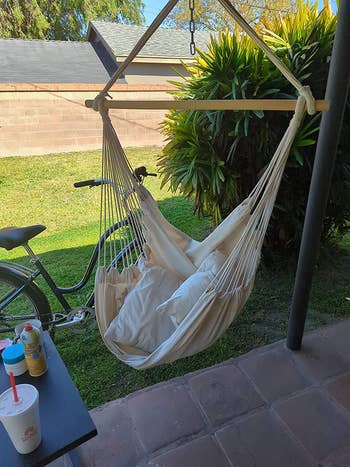 Promising review: "Absolutely love this hammock chair!!! It looks beautiful in my garden, and my friends love to sit in it when they come over." —Kat Payne
