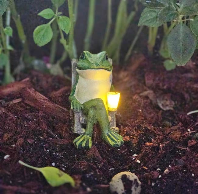 Promising review: "I love this! It’s well-painted, and the solar light works great. It is the cutest thing on my patio table." —solowithpits