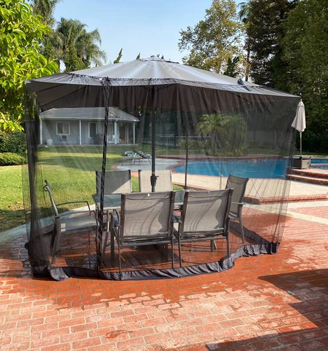Promising review: "We bought this for a rather large umbrella over our table in the backyard and used it for the first time last night. We were less concerned about mosquitoes because we have a service to eliminate them — it's the bees that were disturbing our outdoor meals and events. My wife hosted a few friends last night, and they all fell in love with this. They've all been fighting with bees lately, and they were not bothered once by any bugs. Every friend bought the netting on the spot – you're welcome to the company that manufactures this product. Also, when you're inside the netting sitting on chairs, it's almost as if the netting is invisible; most of the time, you can't tell whether it's even there, especially at night." —Sara Olshansky