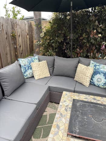 "These are great! The cushions are thick and comfortable. They have been outside on an uncovered patio exposed to the North Carolina elements day and night. They still look brand-new. They are a great buy." —Teresa Butts