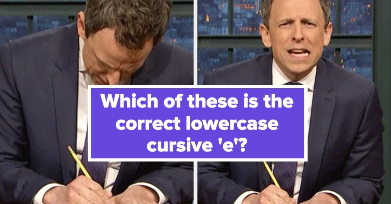 Your third-grade teacher watching you fail this quiz: 👁️👄👁️ Filed under: completely useless skills I learned in school. There are variations in cursive. Depending on when and where (within the US) you went to elementary school, you might've learned the Palmer Method, the Zaner-Bloser Method, the D'Nealian method, or even New American Cursive. Between the methods, some letters are the same; others are very similar. Please choose the closest option to what you remember, even if it's a little off. Want to get your very own quizzes and posts featured on BuzzFeed’s homepage and app?