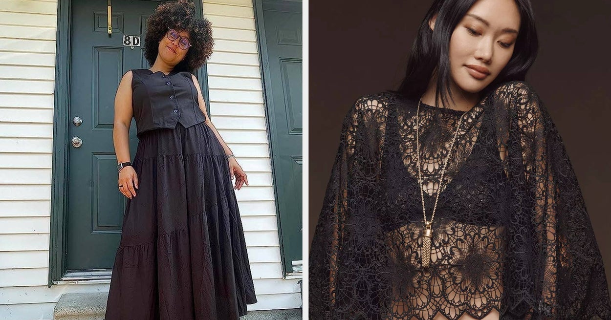 We hope you love our recommendations! While every product is independently chosen by our editors, BuzzFeed and our publishing partners may collect a share of sales or other compensation from the links on this page. You can read more about how our affiliate partnerships work in our Editorial Standards & Ethics Guide. Could you be wearing bright pastels in the spring? Yes. Is the obvious answer to continue wearing black instead? Also yes. The color black is as versatile as it gets, and whoever said that it wasn't spring-forward is severely mistaken. From flowy black dresses, black leather shorts, and (of course) black floral done numerous ways — expand your closet for the season without departing from your signature color with the fashion picks below! Unless otherwise specified, all sizes in this post are listed in women's. Promising reviews: "Buy it!!! This sweater is beautiful! High quality, so soft. It’s perfect! I’m so happy with it." —Ana Gillison "[I got this sweater] after seeing someone's video on YouTube, and let me tell you, it is an amazing material. Feels soft, and of course, I had to go with the trend. I styled it with wide-leg jeans and loafers and received so many compliments. I also pair it with leggings, and that looks great, too. Definitely recommend this..." —Pro Shopper Get it from Amazon for $14.99+ (available in sizes XS–XL and in 13 colors). Get it from Urban Outfitters for $69 (available in sizes XXS–XXL and 11 colors/patterns). Promising review: "I purchased this corset after watching a TikTok video of another mid-sized girl talking about how great it is. It did not disappoint! It fits nicely. I got lots of compliments on it! Someone else pointed out to me that the fabric looks expensive and just like another bustier listed on PrettyLittleThings for over twice the price." —Elizabeth Get it from Amazon for $34.99 (available in sizes 00–20 and in 12 colors). Promising review: "It’s incredibly versatile — perfect for work, a casual day out, or even something more low-key and relaxed. You can easily dress it up or down, which makes it such a staple piece in my closet.If you’re looking for something that feels polished... and timeless with a little personality, this is it." —Malyssa Vizcarra Get it from Amazon for $29.99 (available in sizes XS–XXL and in 20+ colors). Promising review: "Cute midline split skirt. I’ve seen the trend, but it’s been hard finding a skirt that fits in person, so I came to Amazon. This is probably the third or fourth skirt of this type I ordered from various companies, and this fits the BEST. It’s a great thin material, but not see-through. The slit is the perfect balance between classy and sexy. I see it being worn with sandals, then boots, and a sweater for the winter. I live in Florida, so this is the perfect material for here. Not too thick." —sim simma Get it from Amazon for $27.99 (available for XXS–3XL and in 10 colors). Promising review: "I use this with a simple silk undergarment of the same color...From being a beach cover-up for a casual and refreshing dress for the hotter days. Size up if you have bigger arms or large breasts, as it doesn’t have any stretch to it at all." —Joan Espinoza-Gonzalez Get it from Amazon for $23.99 (available in sizes XS–3XL). Promising review: "I got this to be sort of a summer-into-fall transition item, and I’m so surprised by how comfortable it is! If you like things to fit snugly on you, don’t bother getting this because it is loose everywhere unless you tighten it all the way, but it’s super breathable and comfortable! Especially for layering!" —Brie Parry Get it from Amazon for $35.99 (available in sizes XS–5X and 21 colors). Promising review: "Beautiful and worth every penny. This jacket is breathtaking. I love it, and it looks better than pictured. It's not thin or thick, just right as an overlay or on top of a great fit. I plan on reordering in a different color and highly recommend this jacket." —LB Get it from Amazon for $29.99+ (available in sizes XS–XXL, two styles, and 19 colors/patterns). Promising reviews: "TikTok made me buy it. This was an impulse buy, but definitely 100% worth it. This crop top is so cute, and...it’s not too cropped, which I’m a fan of....It fits perfectly, AND I can wear it without a bra. 10/10!" —Brandy Gardner "This top is perfect for a lot of outfits and occasions. The material is butter-soft, double-lined, stretchy, and fits just right. I don’t wear a bra with it, but you can’t see through it at all. It is so comfortable as well. It comes just right above my belly button in terms of length...Definitely recommend for everyday wear or comfy times." —Katherine Get it from Amazon for $17.99+ (available in sizes S–XXL and in 30 colors). Promising review: "Love this two-piece!... It is true to size! I [didn't wear a bra with it], and you [couldn't] tell. It is easy to iron or fluff in the dryer to get the wrinkles out. It is super lightweight and very comfortable! If you’re looking for a versatile outfit that will have you feeling good, grab this one! —Fiorella Carr Get it from Amazon for $29.99+ (available in sizes S–XXL and eight colors). Promising review: "These pants as so comfortable and flowy! I stepped outside of my usual skinny-jean outfit to try this style — and I never want to take them off! They are great casual pants for work and can be dressed up for the evening with a fancy shirt and heels. They are as comfortable as pajamas, without looking like it." —Nash Get it from Amazon for $33.99 (available in sizes XS–2X and in 32 colors). Beginning Boutique is a woman-owned small biz based in Australia. They're the home of tons of bright and trendy fashion pieces, so be sure to take a look at everything! Promising review: "Cozy, soft, and beautiful. [It's a] lovely thick cardigan that is perfectly oversized. Can wear with anything, like over a fancy dress or jeans. Quite heavy mater