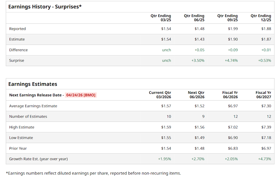 For the current fiscal year, ending in June, analysts expect PG to report a profit of $6.97 per share, representing a 2.1% increase from $6.83 per share in fiscal 2025. Its EPS is expected to further grow 4.7% year-over-year to $7.30 in fiscal 2027.