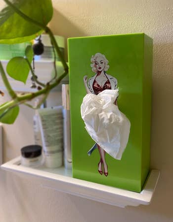 Promising review: "This is just like the photos! It's a fun decoration for our kitchen. It looks just like the photos! Every time you take a tissue out, Marilyn’s dress changes to something different." —Hippie Artist