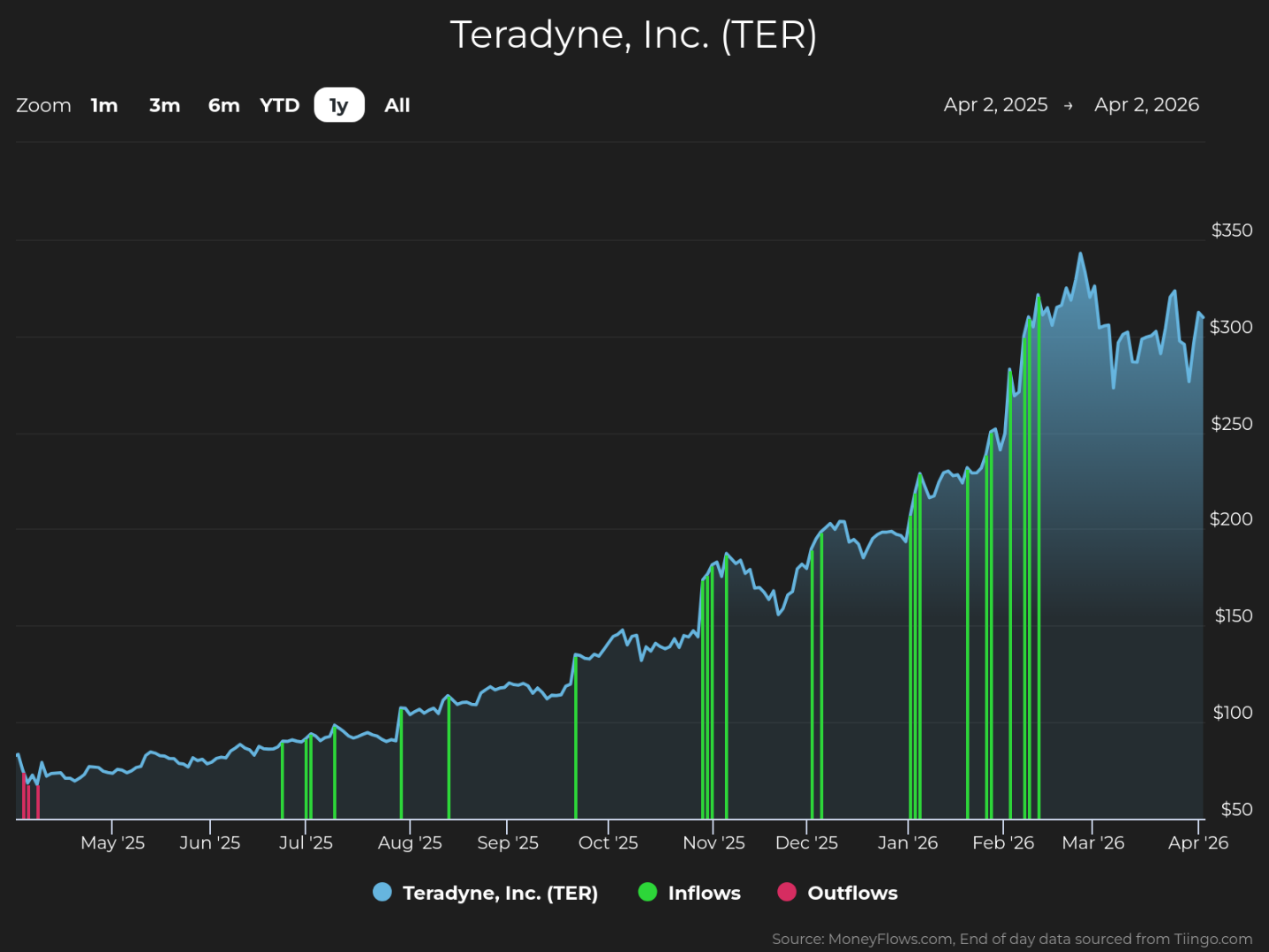 No wonder TER shares are up 61% this year – and they could rise more. MoneyFlows data shows how Big Money investors are again betting heavily on the stock.