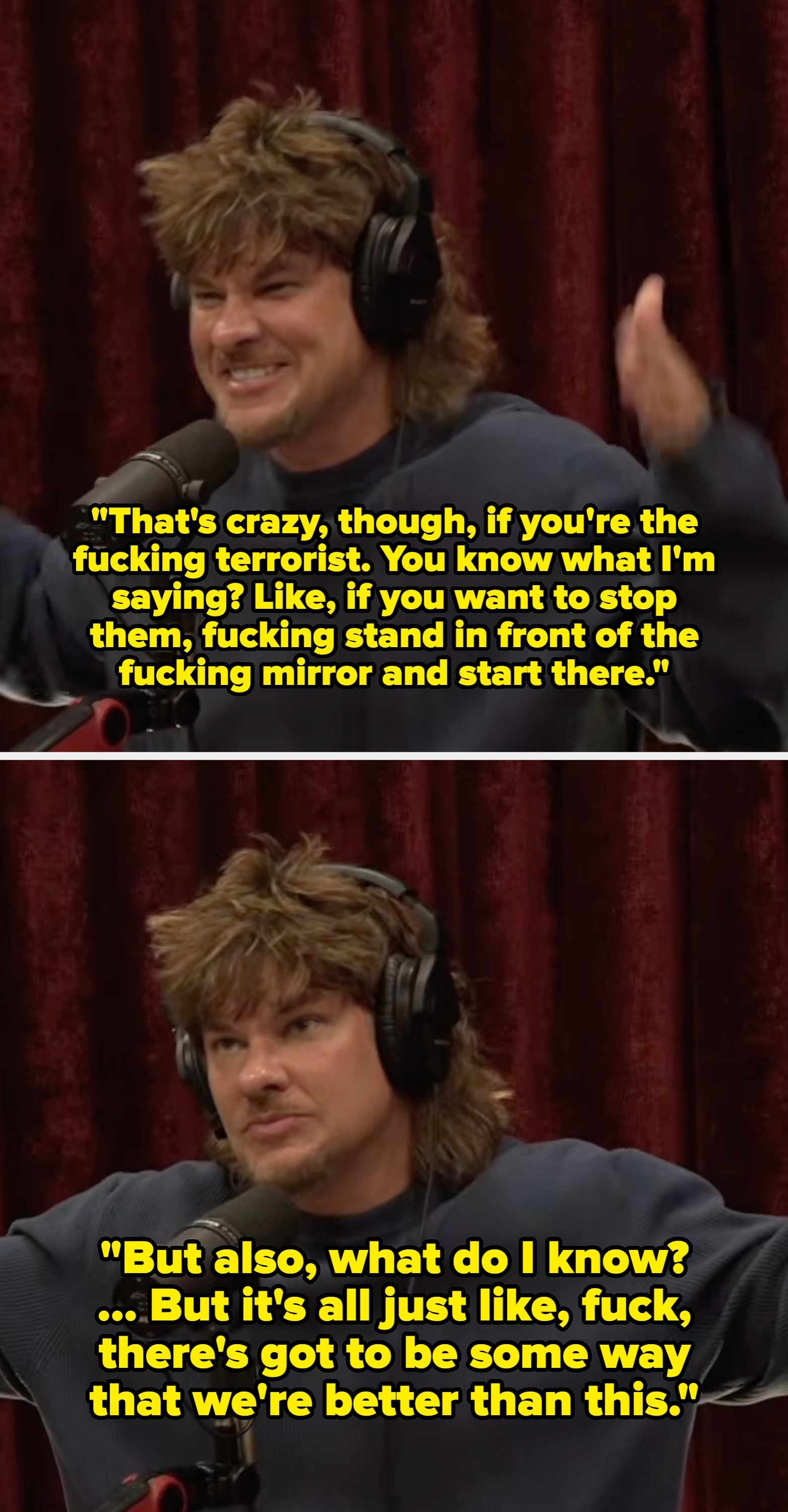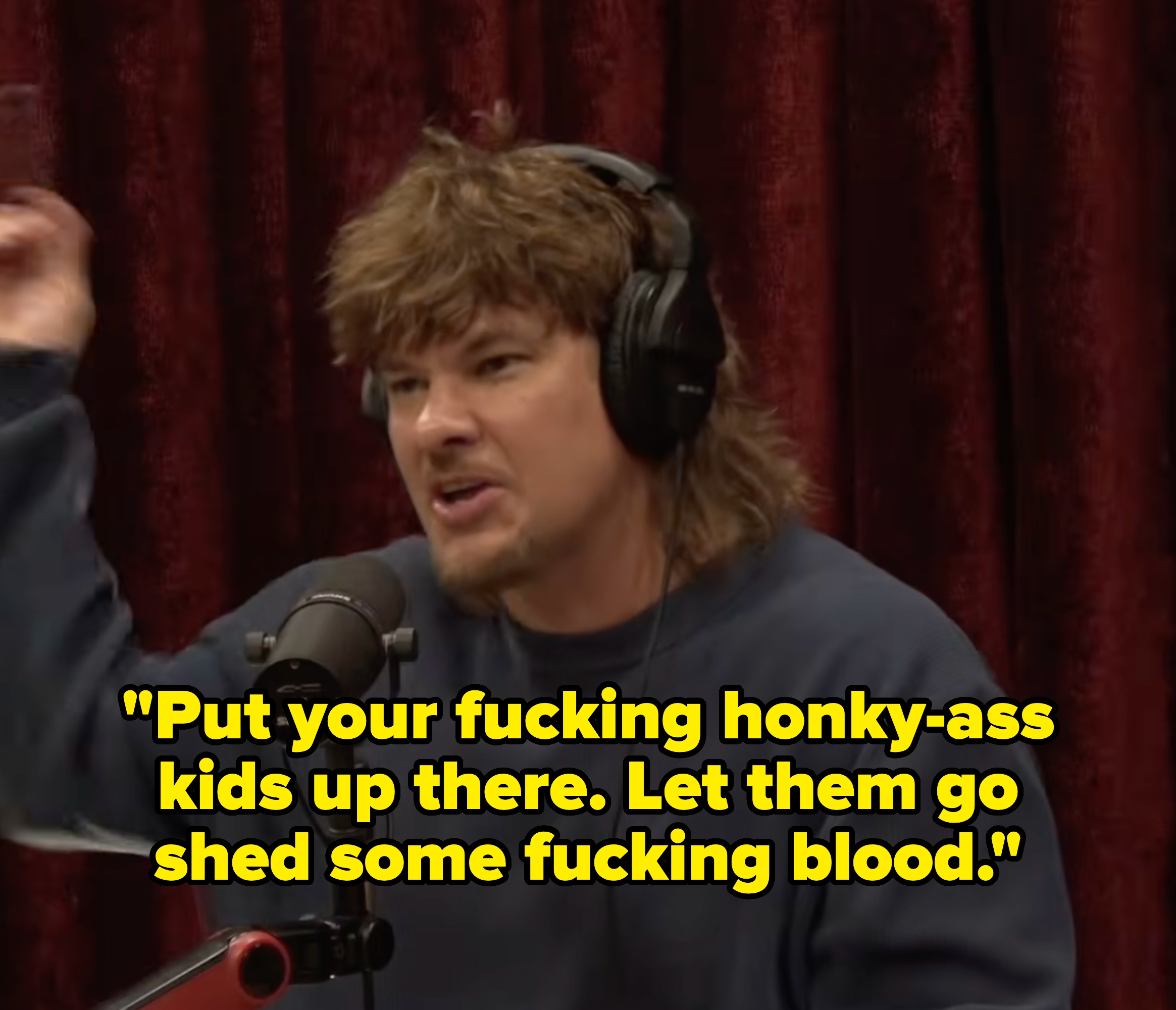 ‘I’M SICK OF RICH PEOPLE NOT PUTTING THEIR F*CKING KIDS OVER IN THESE WARS’ — Theo Von to Joe Rogan‘PUT YOUR F*CKING HONKY ASS KIDS UP THERE. LET THEM GO SHED SOME F*CKING BLOOD’‘Put your f*cking honky little fancy ass f*cking kid up there’ pic.twitter.com/XjxNOCrpKi