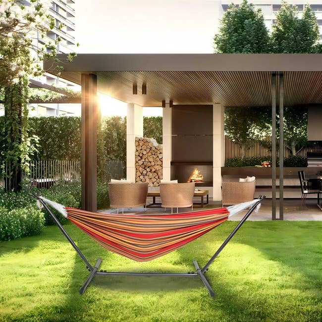 We hope you love our recommendations! While every product is independently chosen by our editors, BuzzFeed and our publishing partners may collect a share of sales or other compensation from the links on this page. You can read more about how our affiliate partnerships work in our Editorial Standards & Ethics Guide. Stunning finds that will make your backyard, patio, or balcony hangout ready. Promising review: "These chairs are nothing shy of AMAZING! They're built so well, the quality is fantastic, and chair covers are included!" —Daren Promising review: "We bought these lights for an outdoor patio wall. They are perfect. The size is medium, large enough to give light but not overpowering. They were simple to hang, and the look is just great. The price was right, too." —Sharon Promising review: "We have four of these we purchased several years ago. They sit outside year-round in the summer sun and winter temperatures in the single digits with freezing and thawing. All four look the same, in perfect condition, and still beautiful." —Gary Promising review: "This pool is perfect!!! We needed a pool that wasn't taller than our 3-year-old grandson, so we could all enjoy the pool. This pool is the perfect height. Our grandson can stand and move around on his own, and the adults are able to sit and relax without needing a pool float. The best part is the canopy that can be utilized to get out of the hot Arizona sun. The liner and frame are very durable. I would highly recommend this product!" —Beth Price: $178+ (originally $299.99+; available in five sizes) Promising review: "Perfect size grill for two people. I actually got this one to replace my bigger grill, because for just two people, this will cook everything you need. Easier to store and will use less charcoal than a bigger grill. Easy to assemble, too. We're happy with it." —Amy Promising review: "Love that its so easy to clean and that you can use either side. Needed something to go under my outdoor dining set and this was perfect." —Cristina Price: $19.79+ (originally $26.99+; available in six sizes, seven colors, and with or without LED lights) Promising review: "Great addition to the front porch next to our rocking chair . Could easily be used inside or outside." —Heather Price: $61.65+ (available in four colors) Promising review: "I have a decently sized patio, but an overall pretty small backyard space. I've always wanted to spend more time out there, and this hammock allows me to do just that. Very easy to set up and also very sturdy and strong. I've definitely spent more time 'working from home' (wink) out there since I purchased it. Would definitely recommend." —LaToya Promising review: "This is one of those items that I knew I didn't need, but I wanted it. It was totally worth a splurge. We are very happy with the flame that is emitted by this fire bowl. We have never owned a fire bowl before, but have enjoyed this to roast s'mores on our small porch. The flame is a great size, and it's so much fun for small gatherings." —Benjamin Price: $375.72+ (available in eight colors) Promising review: "Easy to assemble, it seems sturdy, it looks fantastic, it is self-watering and has a drain if you get too much rain." —Joyce Price: $179.99+ (available in two sizes and three colors) Promising review: "Love, love, love these side tables! They match my patio furniture perfectly. Everyone who sees them wants to know where I got them. They look expensive but weren't. Love that they have a cooler in them." —1MSNana Price: $66.82 (originally $83.52+; available in two styles and four colors) Promising review: "Love the sound, and it is portable, stick in the ground, or hang on a hook. Love the three different flame brightness. 🥰♥️ There's 12 hours of music before charging." —BlancheMarie1 Promising review: "This firepit is perfect for patio gatherings. Easy to assemble and small enough you can pick it up and move locations if need be. Definitely worth the money!" —Cheryl Promising review: "This product is very sturdy and has really good sounds. And it helps that it's waterproof and solar." —GoodWorker Promising review: "This table looks nice, seems sturdy and was super easy to assemble. Definitely recommend!" —Walmart customer Promising review: "Super fun backyard activity for our family." —Anonymous Promising review: "We love this patio set in the mint green color. It is perfect for having coffee or lunch or just relaxing in the garden. I was surprised by the high quality of this set. It has a solid baked-on paint surface that is easy to clean and doesn't look like it will chip or degrade. Highly recommend." —Jean Price: $84.99+ (available in six colors) Promising review: "This umbrella is the perfect answer to the blinding, hot sunshine on my 10 x 11 patio. It looks great, giving the patio a whole new "spa" kind of vibe." —Bell Promising review: "I recently added this steel patio side table next to my swing, and it was the perfect finishing touch to my outdoor space. The table is sturdy, weather-resistant, and just the right size for a coffee cup, book, or even a small snack tray. It looks sleek and modern, blends beautifully with my swing setup, and makes my relaxation zone feel complete. Now I can truly kick back with everything I need within reach—whether it's my morning coffee or an evening drink after a long day." —anonymous Price: $29.99+ (available in six colors) Promising review: "Sleek and modern design with a sturdy metal body—definitely not the cheap plastic you often see. I love the variety of settings, and for the price, the value is hard to beat." —Lacy Promising review: "I have 9 of these lamps, and I started with only 2 because I am cautious. But - they are perfect... I have them on plant hangers around my pool and in my green room, and they are a great addition. They are low light, but it's not obnoxiously bright while still providing a relaxing and lit atmosphere." —Dusch