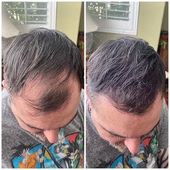 This works best in thinning areas on the crown and part line, and if you're in between two shades, the brand recommends going with the darker option. To use, just sprinkle over the desired area and pat it in — you can also hit it with some hairspray for an extra secure hold. It'll wash out with your next shampoo.