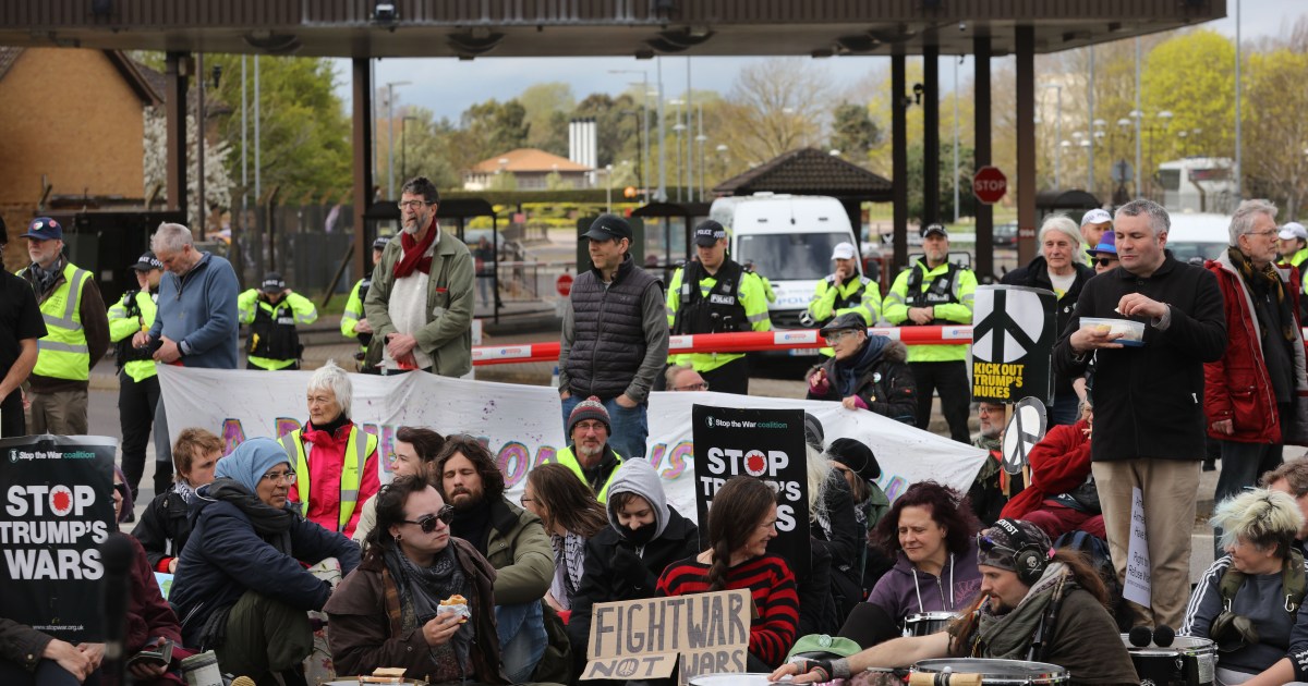The activists were protesting the alleged use of the RAF base as a departure point for US aircraft involved in the US-Israel war on Iran.