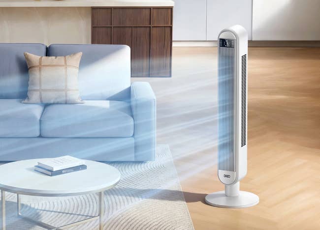 The fan has six different speed settings, 90-degree oscillation, and a handy remote control.