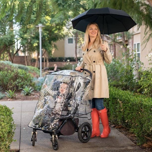 Promising review: "So this product is great for afternoon showers at the theme parks, but recently with COVID have been able to put to great use when having to be out with my toddler in public. She is protected and not touching everything. I clip a battery-operated fan on her stroller under the plastic for circulation and give her videos for entertainment. Makes grocery shopping for parents much safer and easier!" —tracey