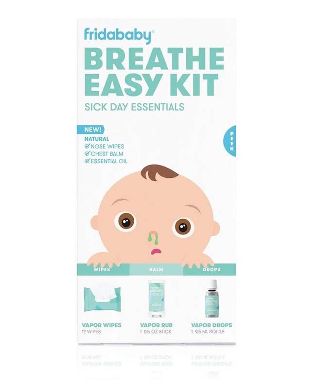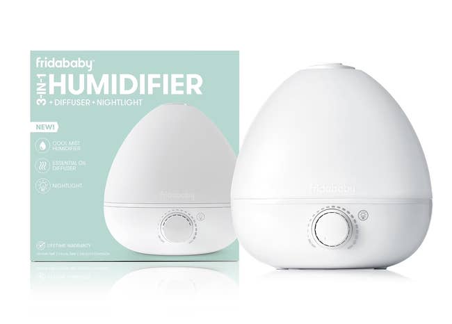 Promising review: "Our newborn tested positive for COVID, and since there's no meds or remedies for someone so small, we turned to the Frida humidifier, with the vapor drops, and Frida saline mist, with the Frida nose sucker. IT WAS A LIFE-SAVER! Baby boy began to improve by the next day!" —Breanna