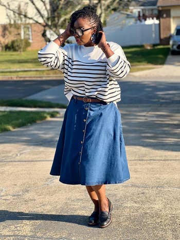 We hope you love our recommendations! While every product is independently chosen by our editors, BuzzFeed and our publishing partners may collect a share of sales or other compensation from the links on this page. You can read more about how our affiliate partnerships work in our Editorial Standards & Ethics Guide. We’ve got pieces to get you through the end of cold weather all the way to that vacay you booked months ago — and all under $80. 😭 Unless otherwise specified, all sizes in this post are listed in women's. Promising reviews: "Love the stretch the fabric has, as well as the playful and bright print. I normally wear a 26–28, and it fits really well." —Rosey Posey, size 5XL "I give it a 10/10. I'm 5'7", 240 pounds. I purchased this beauty in a size 2XL. This dress had the curves, curving. I was concerned about the V-neck. Being large-breasted doesn't mean I want exposure. But it fit perfectly. No cleavage showing here..." —baby66, size XXL Get it from Amazon for $41.99 (available in sizes L–5XL and 28 colors/prints). Promising review: "In love with these sweaters! I actually have bought several colors and keep them in my fall rotation, always. They are comfy and so soft. The size is true to size and the color is so warm and vibrant!" —Kinsey Kirchmyer, size XXL Get it from Amazon for $36.99+ (available in sizes XS–3XL and 40 colors/prints). Shaperx is a small biz offering an assortment of compression bodysuits. Promising review: "Life-changing shapewear for plus-size! FYI I NEVER leave reviews. For reference: I’m 220 lbs, 48DDD chest, apple shape body, and no ass whatsoever. I’ve been looking for comfortable shape-wear that isn’t too tight and I finally found it. I LOVE this set. I feel secure but I’m not uncomfortable. I purchased the 2XL/3XL because I didn’t want it too tight. Alsoooo, I’ve worn it with and WITHOUT a bra and I feel great! I ALWAYS wear a bra and I’m this I feel comfortable and confident without one for the first time ever. I’m purchasing more because I’m just sooo obsessed!" —Joely Kaylor- McCallister, size 2XL/3XL Get it from Amazon for $38.99+ (available in sizes XXS–5XL, three styles, and 12 colors). Promising reviews: "So cute and comfy. I'm 5'3 and 220 with a tummy, and it fit nicely, even my height! Loved it so much I ordered a second in another color. Great versatile piece for a transition wardrobe (weight loss)." —B, size XXL Plus "Love the stretch and soft material, I’m usually hesitant to buy clothes anywhere except Torrid, but I am happy with my purchase. I get a lot of compliments when I wear this skirt!" —Nicole, size 3XL Plus Get it from Amazon for $14.99+ (available in sizes L–5XL and 15 colors/prints). Promising reviews: "I have gotten rid of my old, washed-out, misshapen tees. Tee Rex shirts have taken their place. They wash beautifully, resist wrinkles, and fit perfectly. US understands all body types and creates garments to fit us all!" —Sallie R., size M (18–20) "I find myself wearing these tees several times a week! Just the best tees. Soft, comfortable, nonclingy. Long enough without being sloppy. Lots of choice in color and style (V, crew, short/cap/long sleeves, stripes, plain). I've been wearing them for years!" —Frances C., size L (22–24) Get it from Universal Standard for $50+ (available in sizes 00–40, two necklines, short and long sleeves, and 16 colors/patterns — not all sizes available in all colors). BTW, some reviewers suggest sizing down because the inseam runs long and the waist can run large! Promising reviews: "I'm in love with these jeans! Super comfortable... They have stretch and lightly shape without feeling tight or clingy. They are medium-weight, not too thin but not heavy or stiff. Even on my curvy (size 22W) figure, they give the straight wide-leg effect I was going for. These are longer than most of my jeans. I'm 5'7", and I can wear the regular length with flats (barely), but the length looks better and falls straighter with a slight heel." —Kristi Fisher, size 22 "These are the type of loose fit I like without looking like a plastic bag. The fabric is the softest jean material ever, and it is thick enough for comfortable winter wear! Color just right!" —ravenswing, size 22 Long Get it from Amazon for $33.16+ (available in sizes 14–30, three inseams, and three washes). Promising review: "This is absolutely beautiful, I definitely want other colors. The material is a nice thickness, and it’s quite well-made. I’m 5'8 and 198 pounds, 41D, and according to the reviews and measurements, the 16 was just right. The arms could be a little wider for the size, but honestly but it will be fine. Love the length of the skirt and sleeves. I bought it for work and can’t wait to wear it. Definitely conservative, which is what I generally wear." —SparkleMeHappy, size 16 Get it from Amazon for $22.99+ (available in sizes 0–22 and 21 colors). Promising reviews: "I brought this jacket when I went on an Alaskan cruise. I'm glad I did! It was very warm, lightweight, comfortable, and didn't break the bank. The size, fit, quality, and functionality were exactly what I needed. Also, the jacket wasn't tight, and that was very important because I needed the stretchiness so I wouldn't feel confined. Try it for fall and winter." —Jahel Bowles, size XXL Get it from Amazon for $31.83+ (available in sizes XS–3X, petite fits, and dozens of colors). Promising review: "The fabric is thick with slight stretch. Smooth fabric. The buttons are well-reinforced and classy. Color is nice, I got the grape and cream color. The light one is a bit see-through, but that's ok. I have 40G and bought size 20, it is perfect. No pulling on the breasts, there is even a second button lining to avoid the gaping that occurs with big boobs in button-downs. I'm typically a size 18 in tops, but I size up in button-downs to avoid gape. I can see these shirts having longevity in my workwear rota